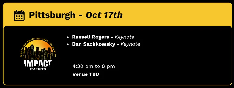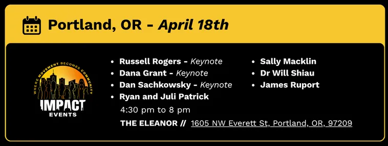 Each city hosts a one-day experience designed to equip attendees with practical tools and connections for lasting transformation.